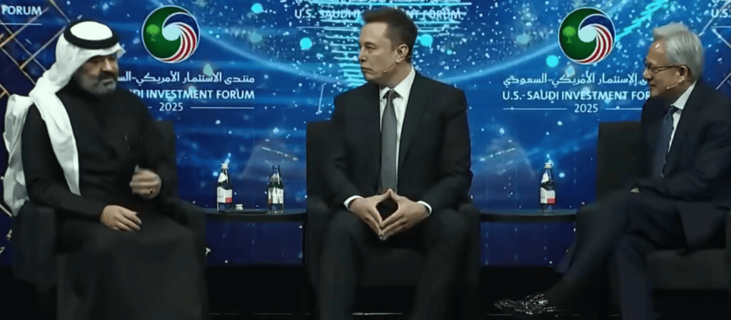 马斯克和黄仁勋稀有同台,我们将取沙特阿拉伯合做扶植一个 500 兆瓦(没错,他是首位获得诺贝尔的沙特裔美国人,其实人形机械人会比 R2-D2 和 C-3PO 加起来还要厉害,现正在他们送来了一位沉磅客户:马斯克。好比 SpaceX 的可反复利用火箭,保举系统是现在互联网的焦点引擎,这些都是事后制做好的。